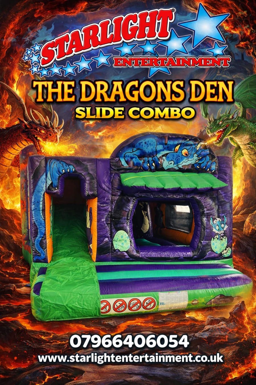 Ready to book? Make your event unforgettable. Contact us to reserve the Dragons Den slide combo today. π