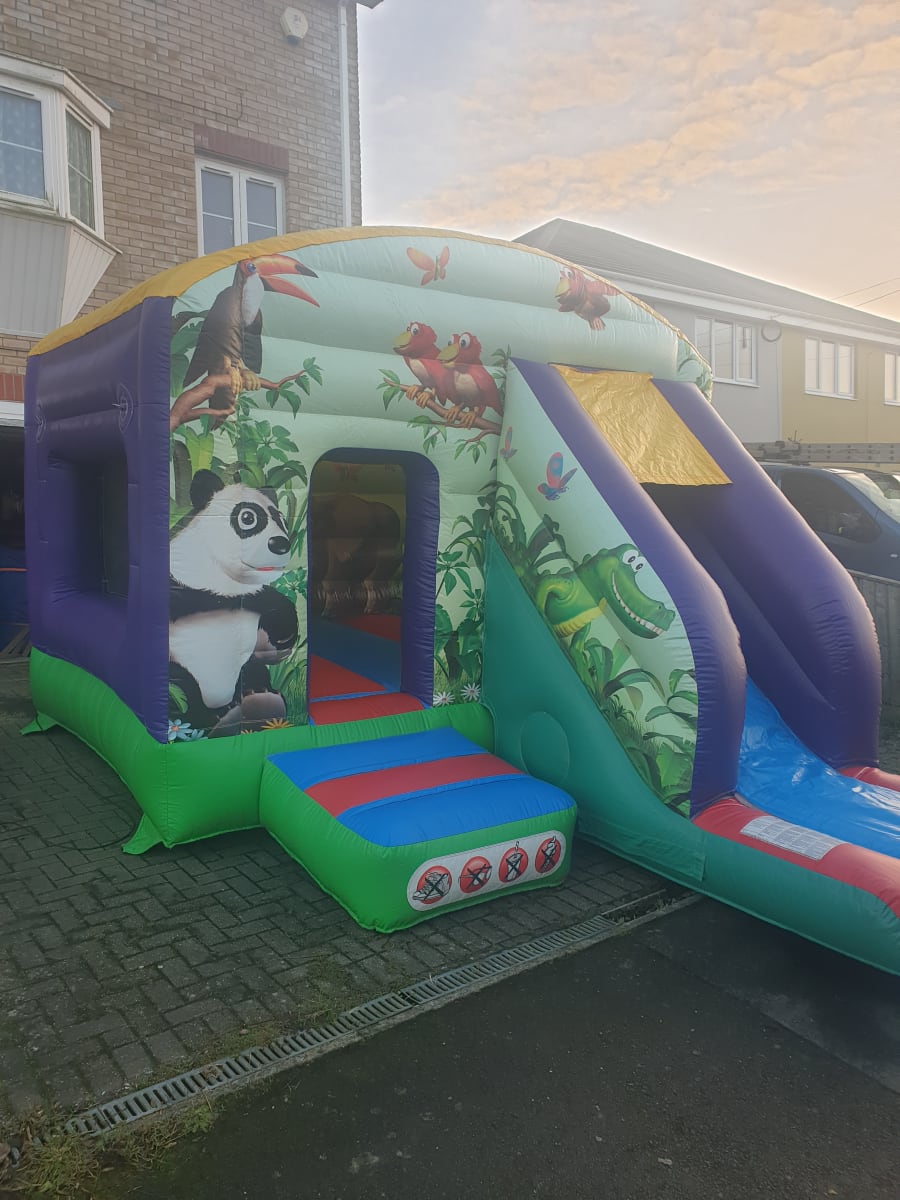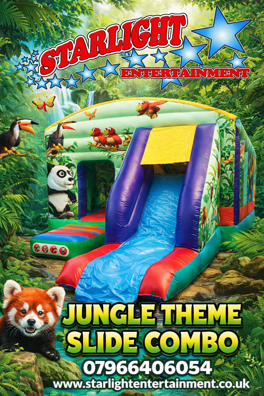 Book the 15 x18ft jungle theme bouncy castle and slide today and make your event roar with excitement. Call us now on 07966406054 to check availability and get a quote. 📞