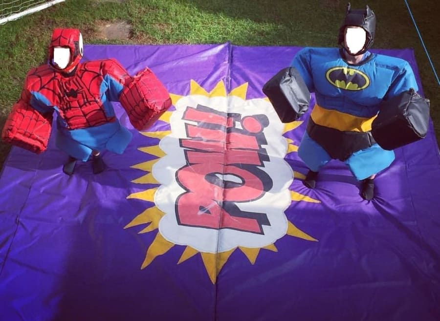 Book Children’s super hero sumo suits today for your next event in Bideford, Barnstaple, Torrington, Ilfracombe, Bude, and surrounding areas. Fast inquiries welcomed. Ready to boost your event with non-stop laughs and superhero action? Contact us now. ⚡